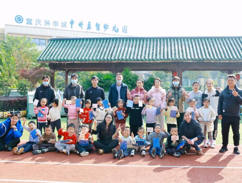在轻松愉快的放松与表彰阶段,党员们带领孩子们做着舒缓的放松操,随后为每位积极参与的“运动小达人”送上重庆大学定制笔记本、明信片等精心准备的小奖品。孩子们手捧奖品,脸上绽放出灿烂而满足的笑容。这份在汗水与欢笑后收获的鼓励,是对他们勇敢参与、热爱运动的充分肯定。
